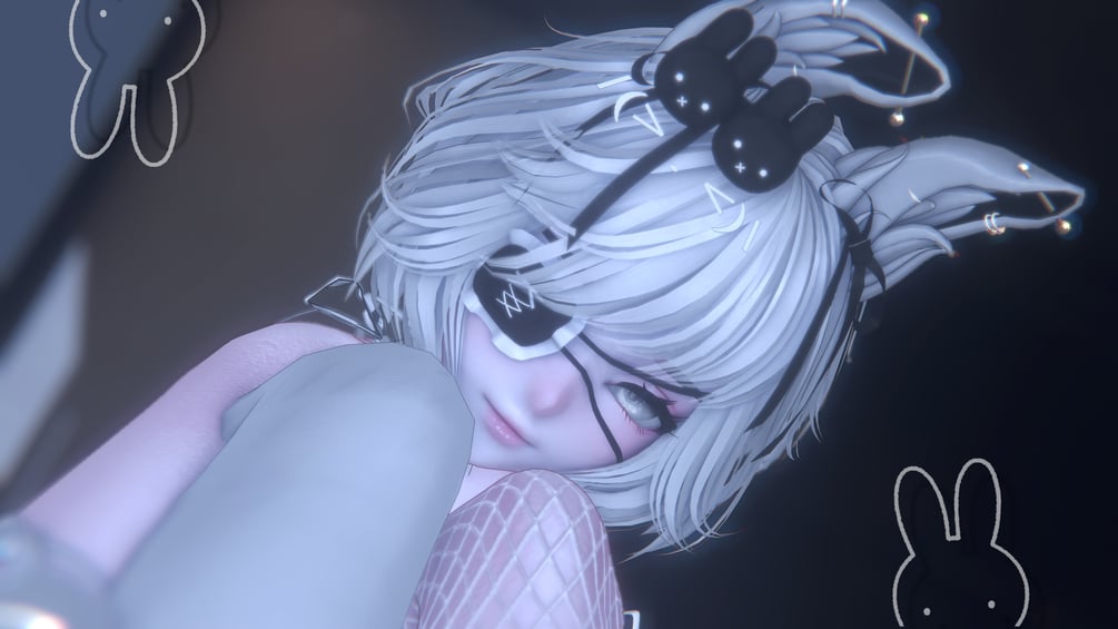 Body - Head - Eyes tex - Hairs - Heels - Glasses - Rings - BODYSUIT - Skirt - Bunny Ears - bunny tail - (miffy set pouty kitti kawaii paper ribbon eyepatch) - Clothes.